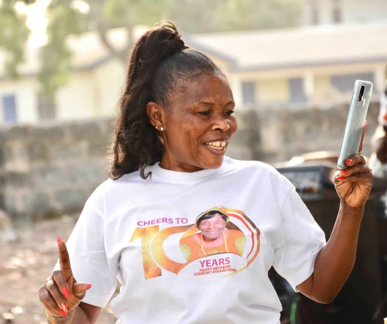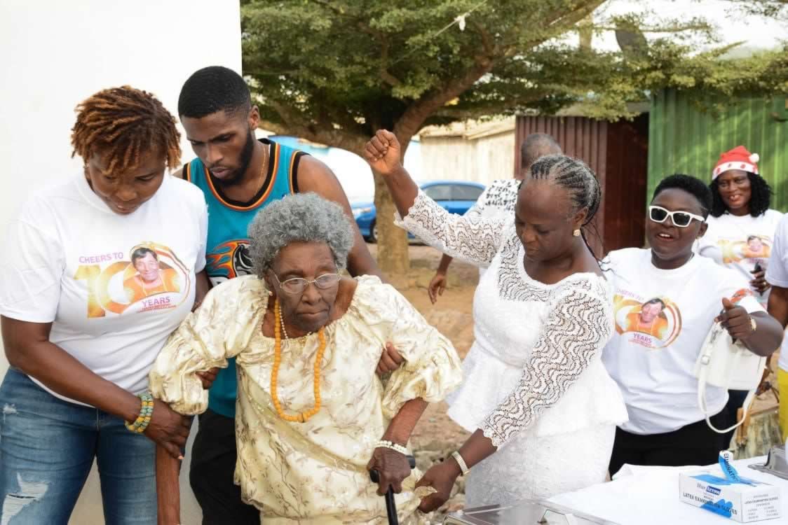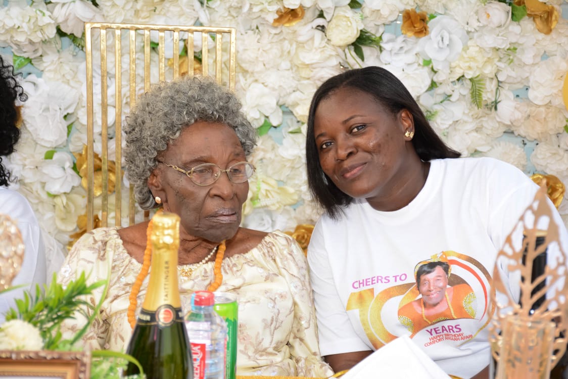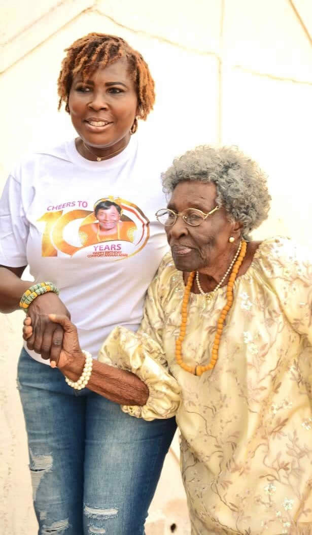 Auntie Comfort called often to find out how we are faring and never excluded us from any programme, activity or occasion in Adukrom. Her pieces of advice and prayers also strengthened us as we grew into adulthood without our parents. It was all joy and gratefulness to the Lord when we joined her to celebrate her one hundred Blessed years (100 years) two years ago. We were all happy and thankful to the Lord to see her in high spirits and prayed for her presence anytime we are around. The Lord has really blessed our Mama Comfort, thus far the Lord has brought us.